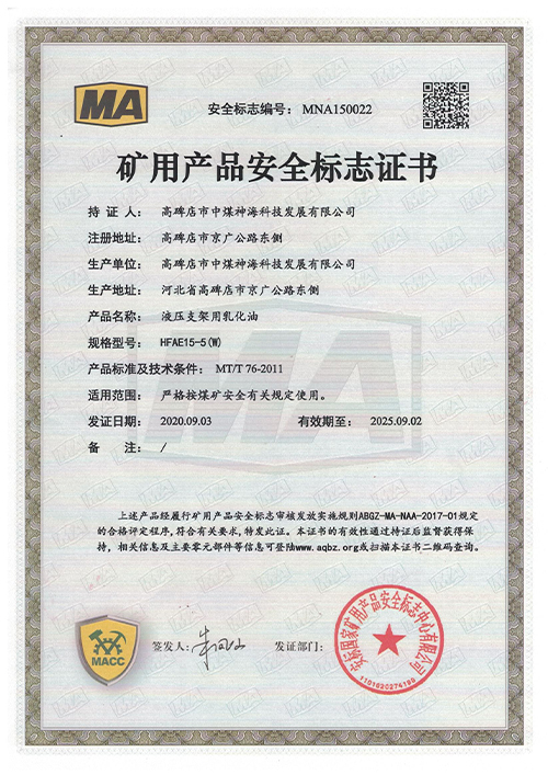 河北中煤神??萍及l(fā)展有限公司難燃液壓液產(chǎn)品上線
