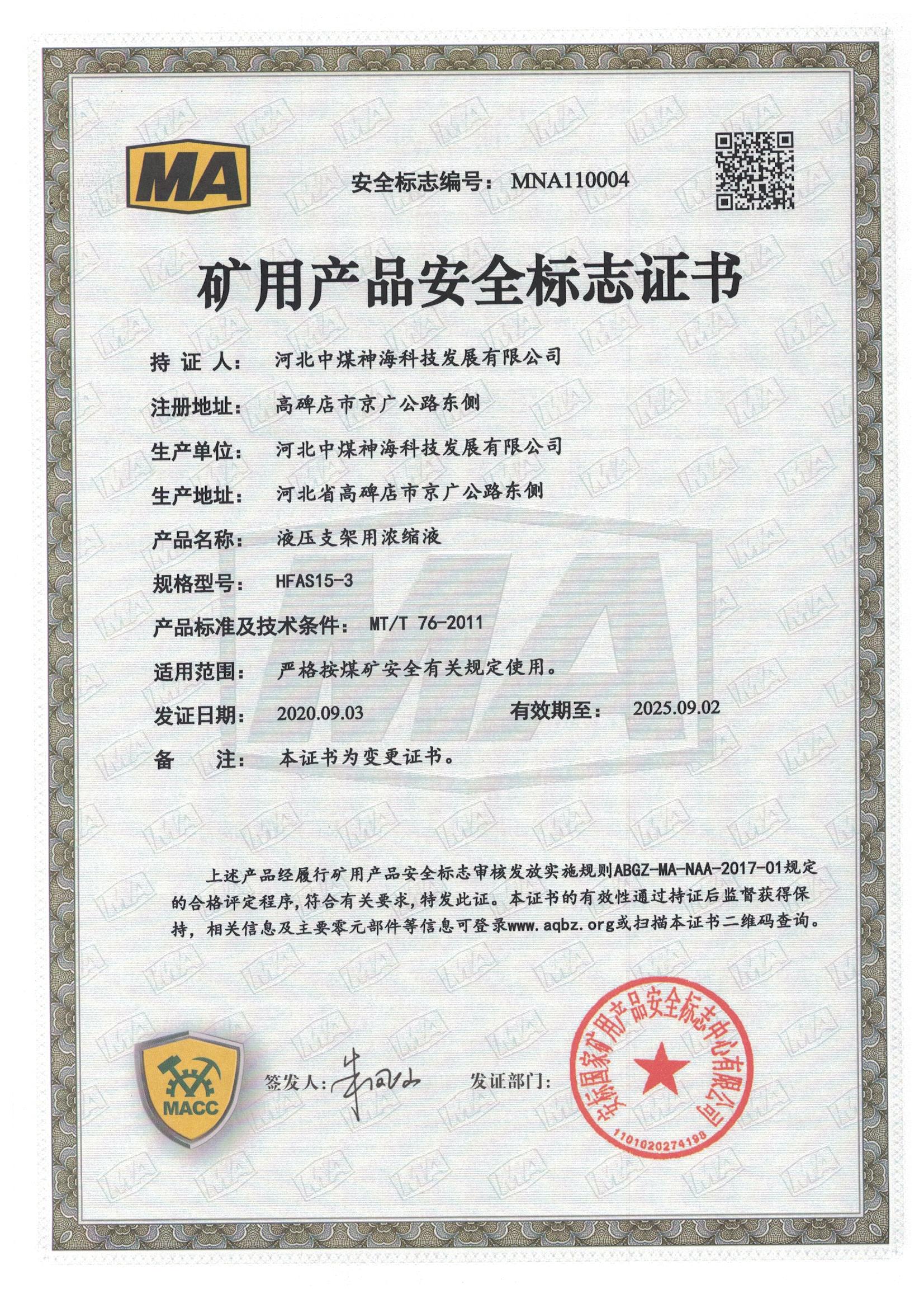 河北中煤神??萍及l(fā)展有限公司難燃液壓液產(chǎn)品上線