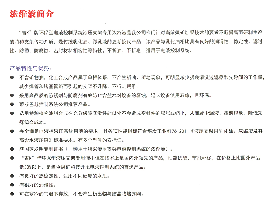液壓支架濃縮液介紹